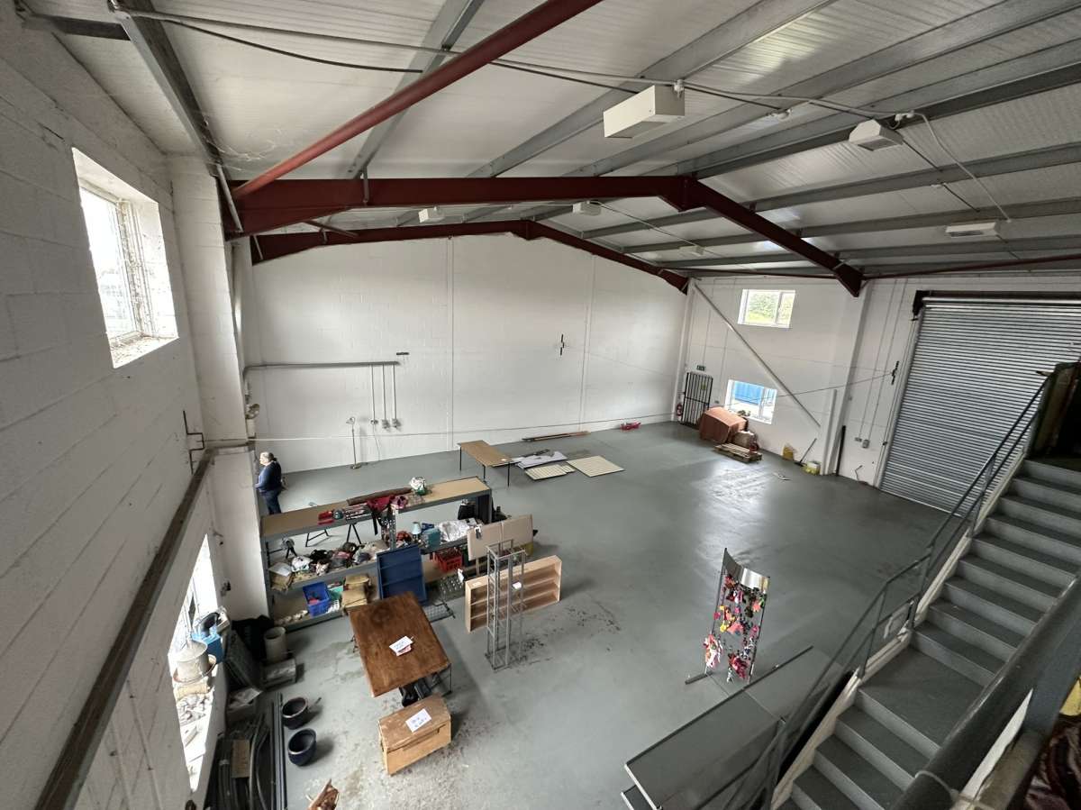 The Property Comprises A Terraced Warehouse Unit Of Steel Portal Frame Construction, With Block Elevations Beneath A Pitched Profiled Insulated Metal Sheet Roof. The Unit Has A Roller Shutter Door To The Rear Elevation (w 3.11 M X H 4.97 M) And A Pedestrian Door To The Front. There Is A Small Yard Area To The Rear And Communal Parking To The Front. Internally, The Unit Is Arranged To Provide Warehouse Accommodation, With Office And Wc Accommodation And A Mezzanine Floor.