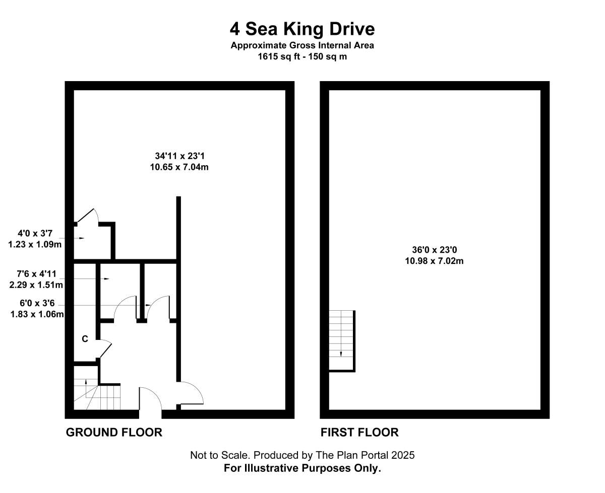 Total Gross Internal Floor area 150 m2 (1,615 ft2)