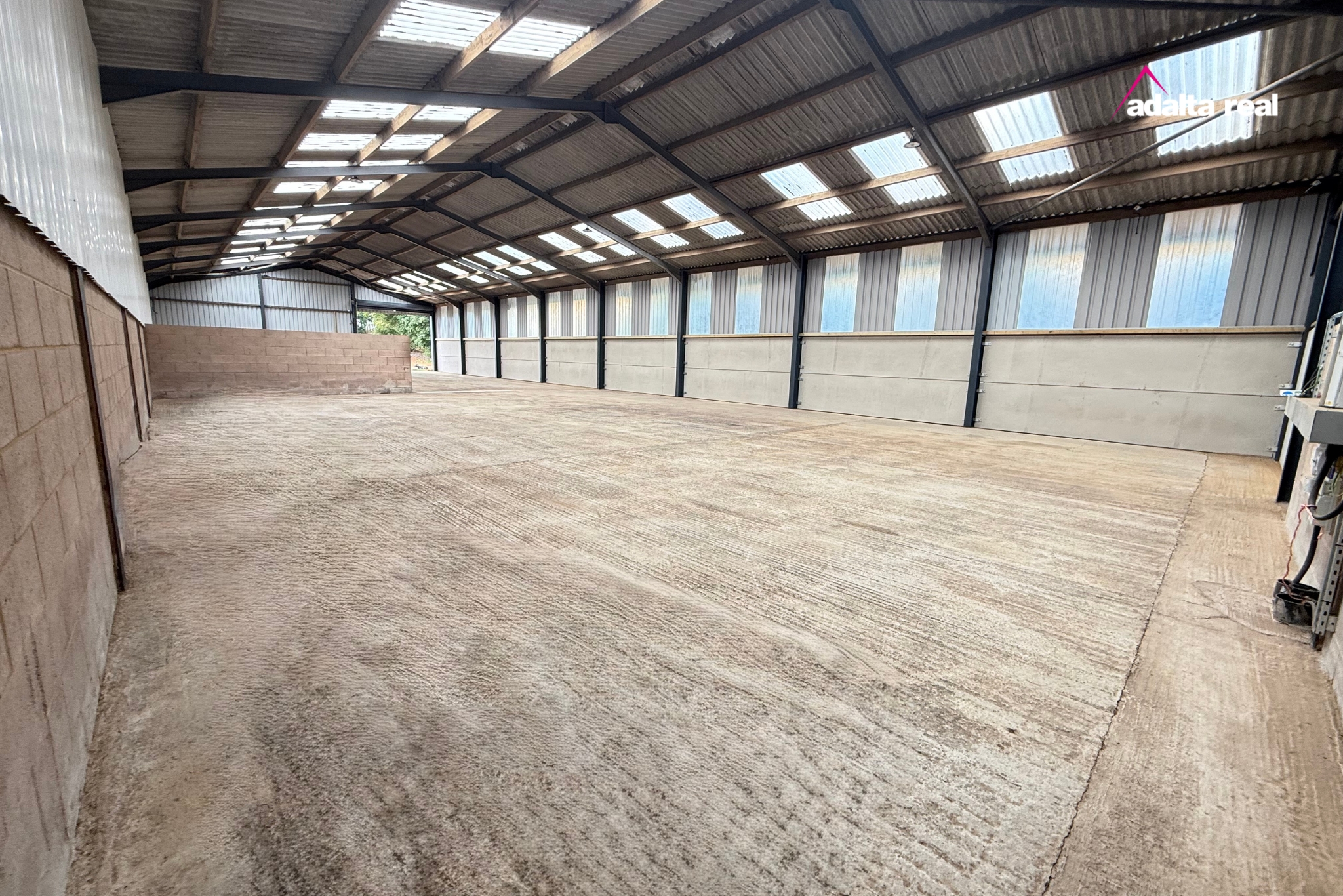 Modern, steel portal framed, profile clad insulated agricultural storage/workshop units with three phase electricity, water and full height roller shutter loading door.